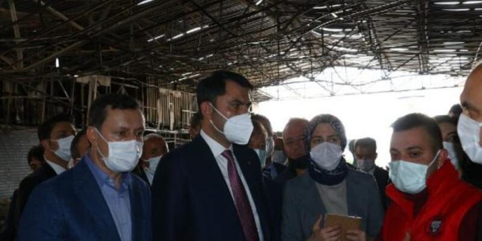 Kızılcahamam’da Kasaplar Çarşısı’nda dün çıkan yangında kullanılmaz hale gelen iş yerlerinde inceleme yapan Çevre ve Şehircilik Bakanı Murat Kurum, soğutma çalışmalarının sürdüğü alanda iş yerleri yanan esnaf ile görüştükten sonra basın mensuplarına açıklamalarda bulundu.