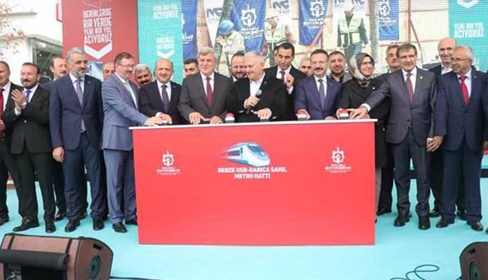 TBMM Başkanı Binali Yıldırım, Kocaeli Valisi Hüseyin Aksoy, AK Parti Kocaeli milletvekilleri Fikri Işık, İlyas Şeker, Radiye Sezer Katırcıoğlu ve Cemil Yaman, Kocaeli Büyükşehir Belediye Başkanı İbrahim Karaosmanoğlu, Ulaştırma ve Altyapı Bakan Yardımcısı Enver İskurt, İstanbul Büyükşehir Belediyesi Genel Sekreteri Hayri Baraçlı ve ilçe belediye başkanları ile vatandaşlar katıldığı törenle birlikte; Kocaeli Belediyesi tarafından yaptırılacak olan metronun ilk ayağını oluşturan, 15.6 kilometre uzunluğunda, 6.5 metre çapında 2 tünelden ve 12 istasyondan meydana gelecek olan Gebze OSB-Darıca Sahil arasındaki metro hattının temeli bugün atıldı. İki ana durak arasındaki ulaşımı 19 dakikaya indirecek olan metro hattının 2022’de hizmete girmesi planlanıyor. Kocaeli’de yapılacak metro çalışmalarının yaklaşık 5 milyar liralık yatırım maliyeti bulunuyor.
