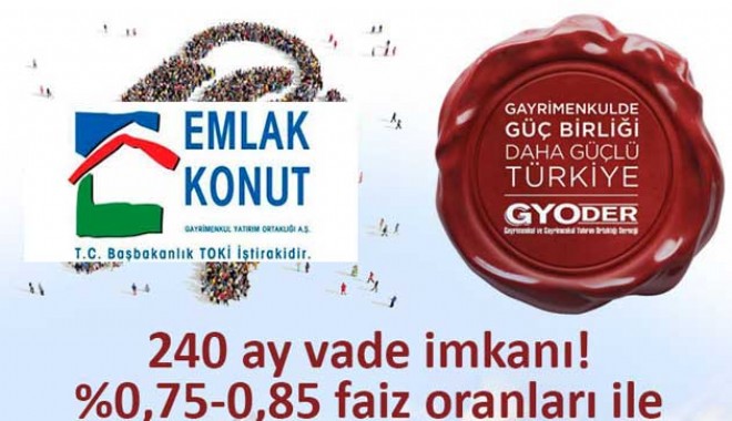 Emlak Konut GYO ve Gayrimenkul ve Gayrimenkul Yatırımcıları Derneği (GYODER) tarafından 1 şubatta başlatılan ve 31 marta kadar devam edecek olan 'Güçlü Türkiye için Birlik Vakti' kampanyasıyla bugüne kadar yuvarlak hesap 4 bin 500 kadar konutun satışı gerçekleşti. Yüzde 5 peşin, yüzde 15 bir yıl sonra ara ödeme , 5 yıl ödeme vadesinde '0' faiz veya 10 yıl aylık 0.45 ya da 20 yıl aylık 0.75-0.85 aralığında vade farkıyla uzun dönemli kolay ödemeli konut kampanyasında en yüksek ilgiyi yüzde 53'lük oranla 60 ay vadede sıfır faiz seçeneği gördü. 10 yıl vadeyi seçenlerin oranı ise yüzde 27 olarak gerçekleşti. Kampanyada 20 yıl ödeme vadesini seçenlerin oranı ise yüzde 10'da kaldı. Peşin alımlardaki cazip indirim oranlarından da faydalananların oranı 240 ay vadeyi seçenlerle aynı oranda yüzde 10 olarak gerçekleşti. Kampanya 31 mart akşamına kadar devam edecek.
