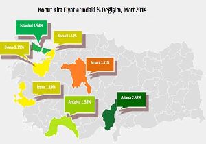 Mart ayında Adana'da metrekare başına konut Kira değerleri %2.63 oranında artmış ve Adana kiraların en çok yükseldiği şehir olmuştur. Aynı dönem içerisinde konut kira değerleri Ankara'da %1.11 oranında; Antalya'da %1.38 oranında; Bursa'da %1.19 oranında; İstanbul'da %1.94 oranında; İzmir'de %1.19 oranında ve Kocaeli'nde %1.19 oranında artmıştır.
