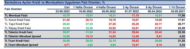 Bankaların TL mevduat için uyguladıkları faiz oranı 23 Eylül