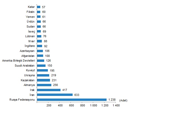 Ağustos 2022’de Türkiye’den en çok konut alan ilk 5 ülke vatandaşları şu şekilde sıralandı: