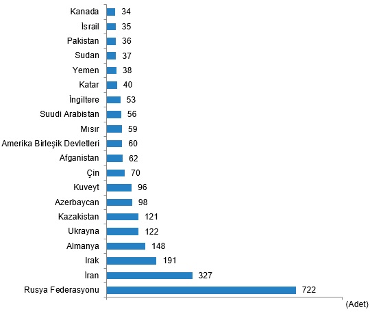 Uyruklara göre en çok konut satışı yapılan 20 ülke, Eylül 2023