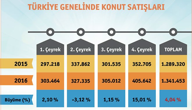 2016 yılında 1 milyon 341 bin 453 konut satıldı