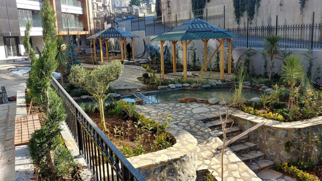 • Peyzajlı yeşil alanlar, yürüme yolları, dinlenme ve barbekü alanları, suni gölet ve süs havuzu
