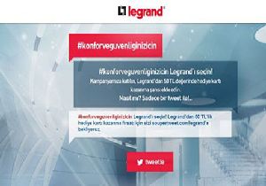 Legrand Türkiye Twitter kampanyasında takipçiler tek bir tweet atarak hediye kartı kazanma şansı elde ediyor. 2 hafta sürecek kampanyada kullanıcılar www.soupertweet.com/legrand adresi üzerinden tek tuşla “#konforveguvenliginizicin Legrand'ı seçin! Legrand'dan 50 TL'lik hediye kartı kazanma fırsatı için sizi soupertweet.com/legrand'a bekliyoruz.” tweetini atıp, @LegrandTR hesabını takip ederek hediye kazanma fırsatına bir adım daha yaklaşıyor. Her haftanın sonunda 3 şanslı takipçi 50 TL değerinde hediye kartının sahibi olacak.