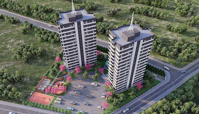 Projede brüt 165 metrekare büyüklüklerinde 3+1 kat planında daireler bulunuyor.