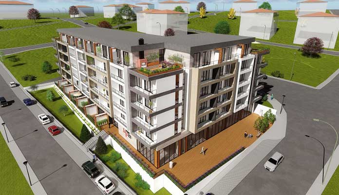 Projede tamamı brüt 57 metrekare büyüklüğünde ve 1+1 kat planında 101 daire ve kiralanabilir ticari alanlar bulunuyor.