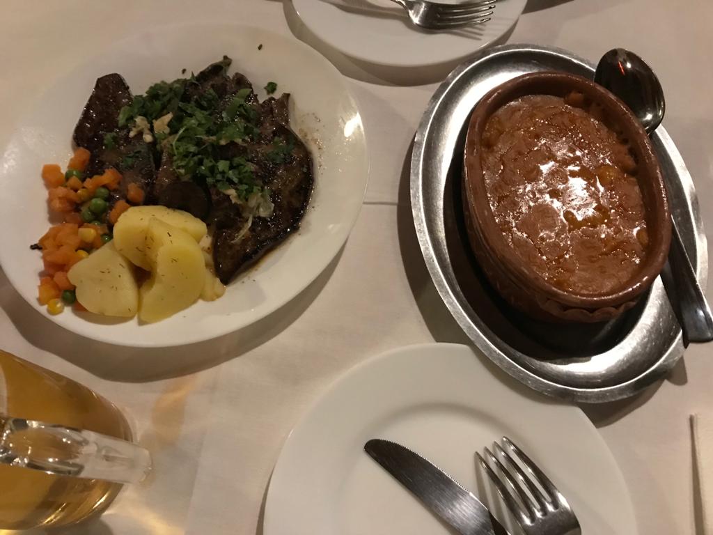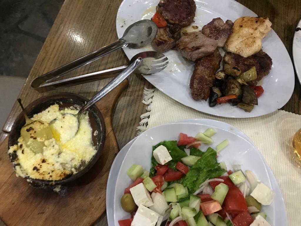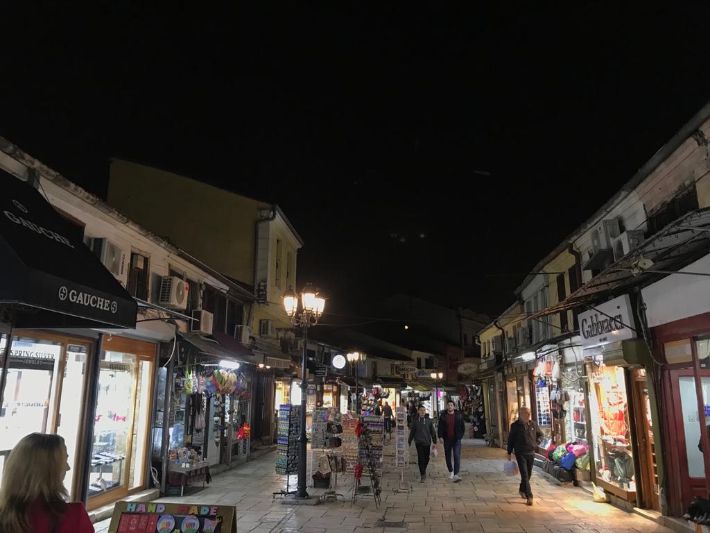 Buradan çıktıktan sonra saat 6 olmuştu ve hava iyice kararmıştı. Bu arada belirteyim ki bu şehirde hava saat 4’te kararmaya başlıyor. Gündüz güneşli ve ılık diyebileceğimiz hava gece yerini kuru soğuğa bırakmış olacağından içimiz ısınsın diye Türk Çarşısı’nda bir mekanda oturup çay içtik ve tabiki yanında balkanların meşhur tatlısı olan Trileçe yedik. Ertesi gün için Matka Kanyonu’na nasıl gideceğiz diye düşünürken çarşıda bir Türk ile karşılaştık ve bize tur yaptığını, minibüs ile Matka Kanyonu ve Makedon Köyü’nü kapsayan turu kişi başı 22 Euro’ya düzenlediğinden bahsetti. Biz de nasıl gideceğiz diye fazla düşünmek istemediğimiz için adamla ertesi gün yapılacak tur için anlaştık. Biraz ısındıktan ve turu da ayarladıktan sonra Makedonya Meydanı’ndan geçerek şehrin arka sokaklarını dolaştık. Akşam yemeğinde buranın geleneksel yemeklerinden denemek istediğimiz için, şehrin yıldızlı restoranlarından olan Nadzak isimli restorana geldik. Bu restoran şehrin meydanına 15 dakikalık bir yürüme mesafesinde yer alıyordu. Aynı bölgede geleneksel yemekleri tadabileceğiniz birçok farklı restoran seçeneği de mevcut. Yemek olarak sarımsaklı ciğer ve güveçte kuru fasulyelerinden söyledik.