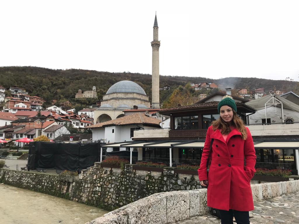 Sabah 11 gibi hazırlanıp Prizren’e gitmek için yola çıktık. Yarım saatte bir Prizren’e otobüs var ve ücreti kişi başı 4 Euro. 12.00’deki otobüse yetiştiğimizden, yaklaşık 2 saat süren yolculuğun ardından saat 14.00 gibi Prizren’e vardık. Çok uluslu nüfusunun etkisiyle cami ve kilisenin yan yana olduğu, içinden nehir geçen ve köprülerle birbirine bağlı olan, benim Bursa’ya çok benzettiğim küçük bir kasabaydı burası. Çok aç olduğumuz için ilk olarak bir restoranda yemek yedik. Üsküp gibi burada da et yemek çok uygun ve yaygın. Kültürel yemekleri köfte olduğundan burada köfteye doyduk diyebilirim. Ardından görülmesi gereken noktaları işaretlediğimizden şehri keşfetmeye başladık.