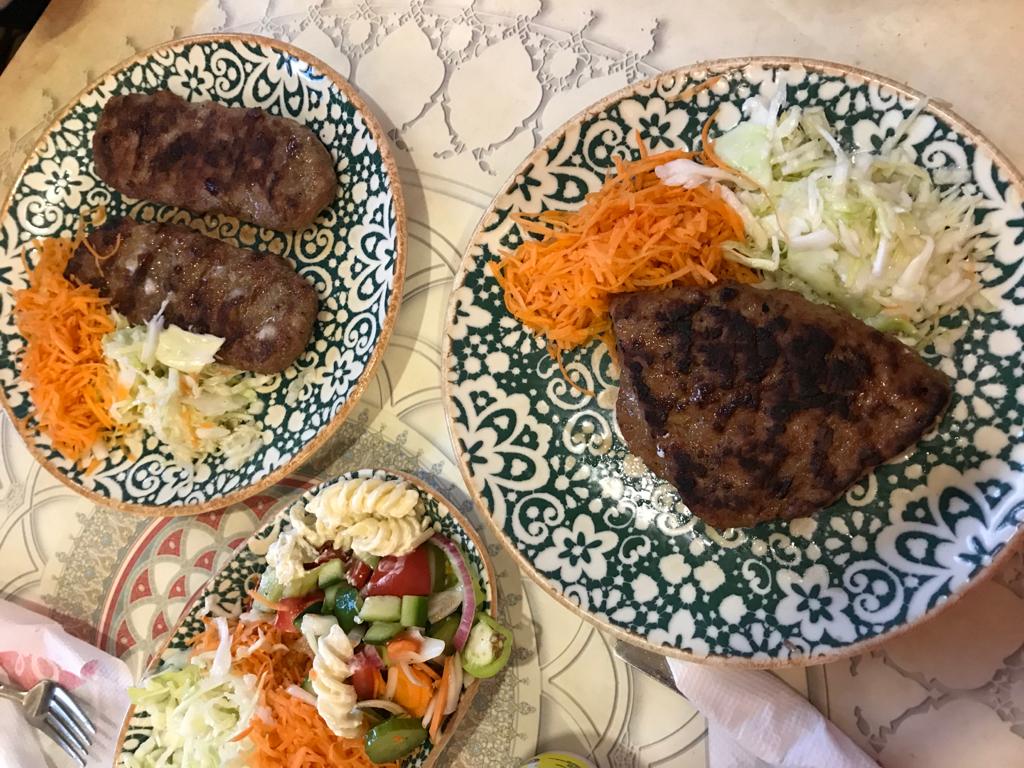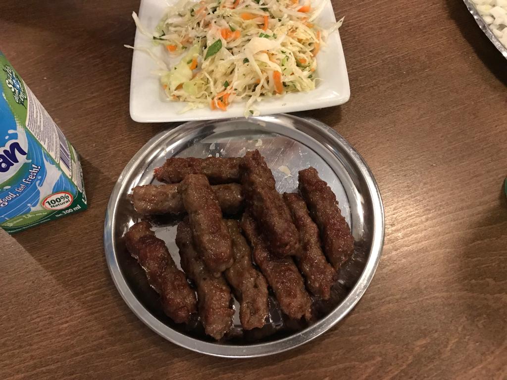 Para bozdurmak için geldiğimiz yer Şehrin en önemli turistik noktası olan Türk Çarşısı’ydı. Daha sonrasında kahvaltı etmek için buradaki dükkanlardan birinden börek ya da onların deyimi ile burek aldık ☺ Çarşıdan çıkıp meşhur Taş Köprü’den geçip otelimize geldik. Otel dediğime bakmayın, öyle ayrı bir resepsiyonu falan yoktu. Daha sonra odamıza yerleşip telefonumuza “Lonely Planet” isimli uygulamayı indirdik. Ben gelmeden önce nerelerinin gezilmesi gerektiği ile ilgili biraz araştırma yapmış olsam da, bu uygulama önceliklerimizi belirlemede oldukça işimize yaradı. Gezmeye ilk olarak yemek ile başlamak istediğimiz için buranın en meşhur köftecisi olan Destan’a geldik. 1 porsiyonda 10 tane köfte var. Onlarda kebap diye geçiyor. Bir de kocaman içi peynirli Pleskavitsa adında yöresel bir köfteleri var. Biz tadına bakmak adına ikisinden de birer porsiyon söyledik, yanına lahana salatası ve ayrana toplam 720 makedon dinarı yani 72 TL ödedik. Şunu belirtmeliyim ki burada et yemek bizdeki gibi lüks sayılmıyor.