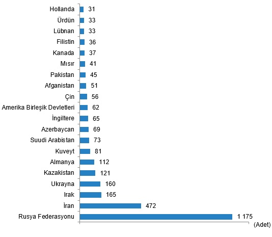 Mart ayında, Rusya Federasyonu vatandaşları Türkiye’den 1.175 konut satın aldı. Rusya Federasyonu vatandaşlarını sırasıyla 472 konut ile İran, 165 konut ile Irak vatandaşları izledi.