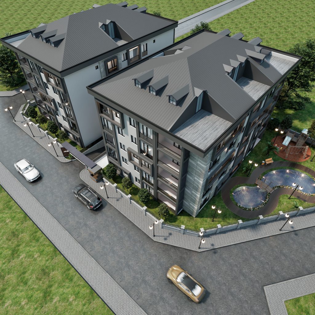 2+1, 3.5+1 ve 4.5+1 kat planlarında 40 daireden oluşan projenin özellikleri ve sosyal donatıları şöyle: