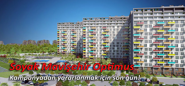LEED Gold adayı Soyak Mavişehir Optimus, toplam 1109 konuttan oluşuyor. Soyak Mavişehir Optimus’tan 2+1 ya da 3+1 daire satın almak isteyenler son 20 daire için bu özel kampanyadan 23 Ocak 2014 tarihine kadar yararlanacakları gibi, dilerlerse peşin alımlarda % 19 indirimden de faydalanabilecekler.