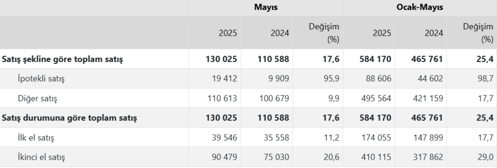 Konut satışı, Mayıs 2025