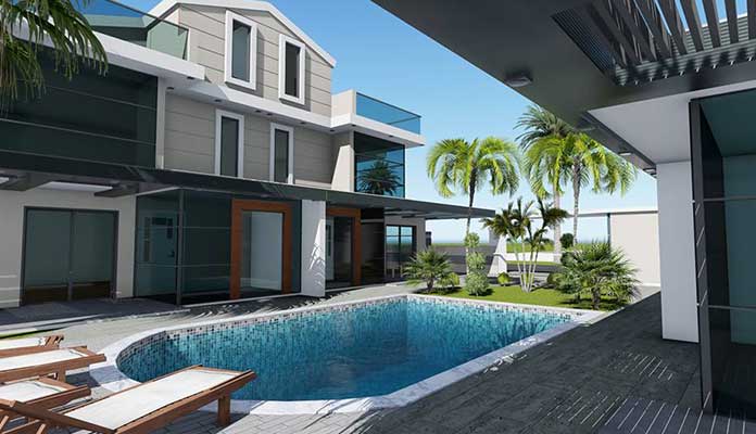 Palmiye Park Villaları’nda kat planları ve sosyal alanlar