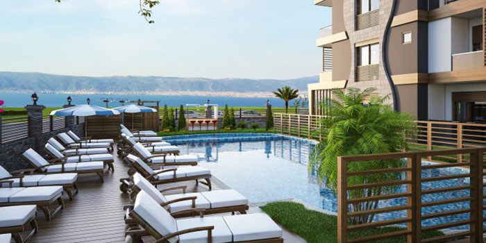 Deniz manzarasına hakim projede peyzajlı yeşil alanlar, 2 adet açık yüzme havuzu, bahçe dublekslerinde 30 metrekare veranda, çatı dublekslerinde 15 ve 22 metrelik teras açık otopark alanları bulunuyor.