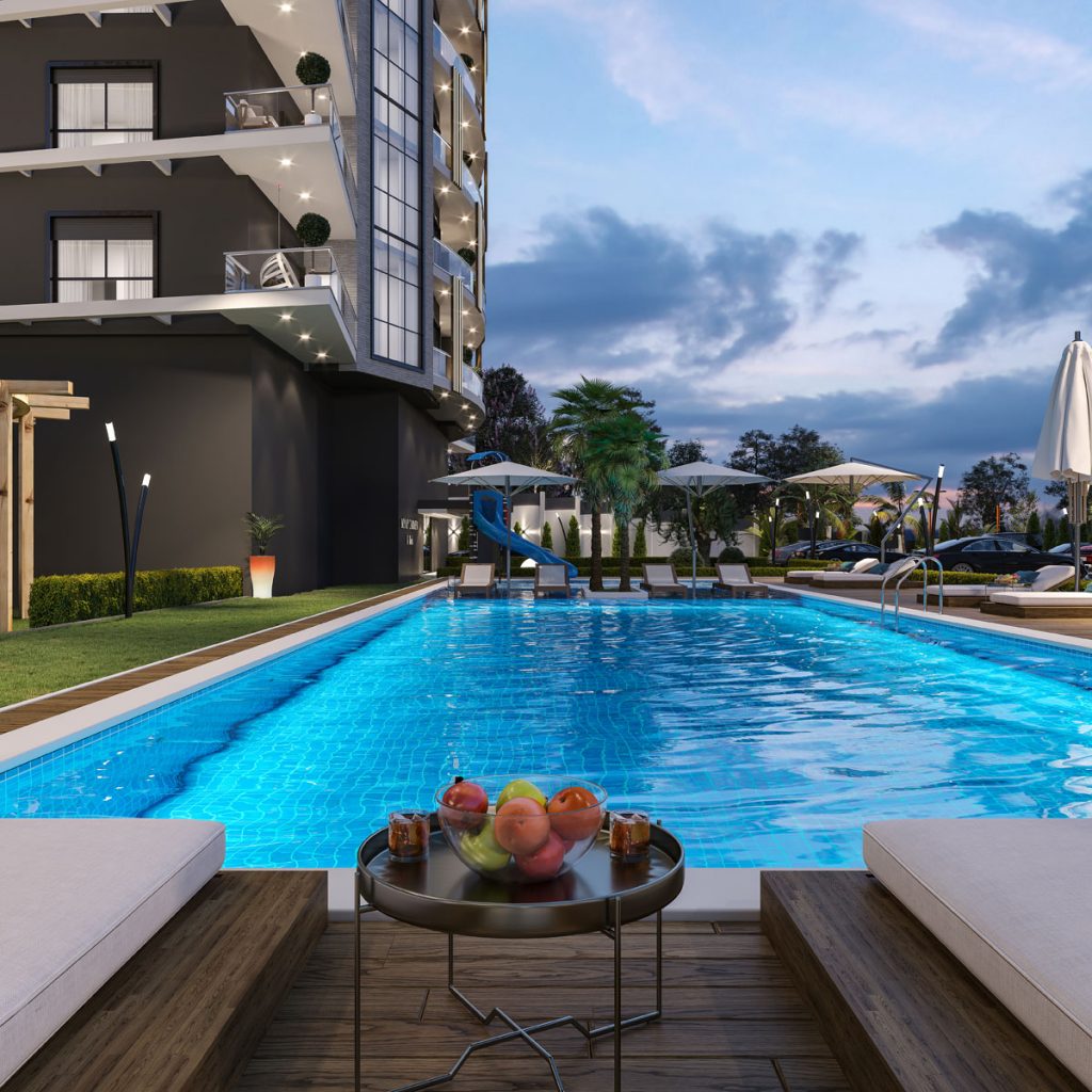 - Çocuklar için oyun alanları ve yüzme havuzu