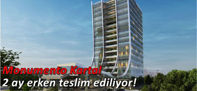 Dünyaca ünlü mimari grup Chapman Taylor ve Türk proje ortağı Movipar Mimarlık tarafından Adalar’a geniş açıdan bakacak şekilde tasarlanmış olan Monumento Kartal’da Aralık 2013 tarihi itibariyle teslim süreci başlıyor. Belirlenen tarihten iki ay önce yeni sahipleri ile buluşacak olan Monumento Kartal, sunduğu sosyal ayrıcalıkları, geniş ortak alanları ve merkezi konumu ile hem yatırımcılara hem de kullanıcılara hitap ediyor.