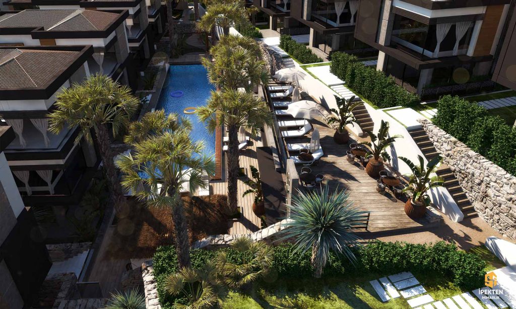 Myra Port Villaları’nda kat planları ve sosyal alanlar