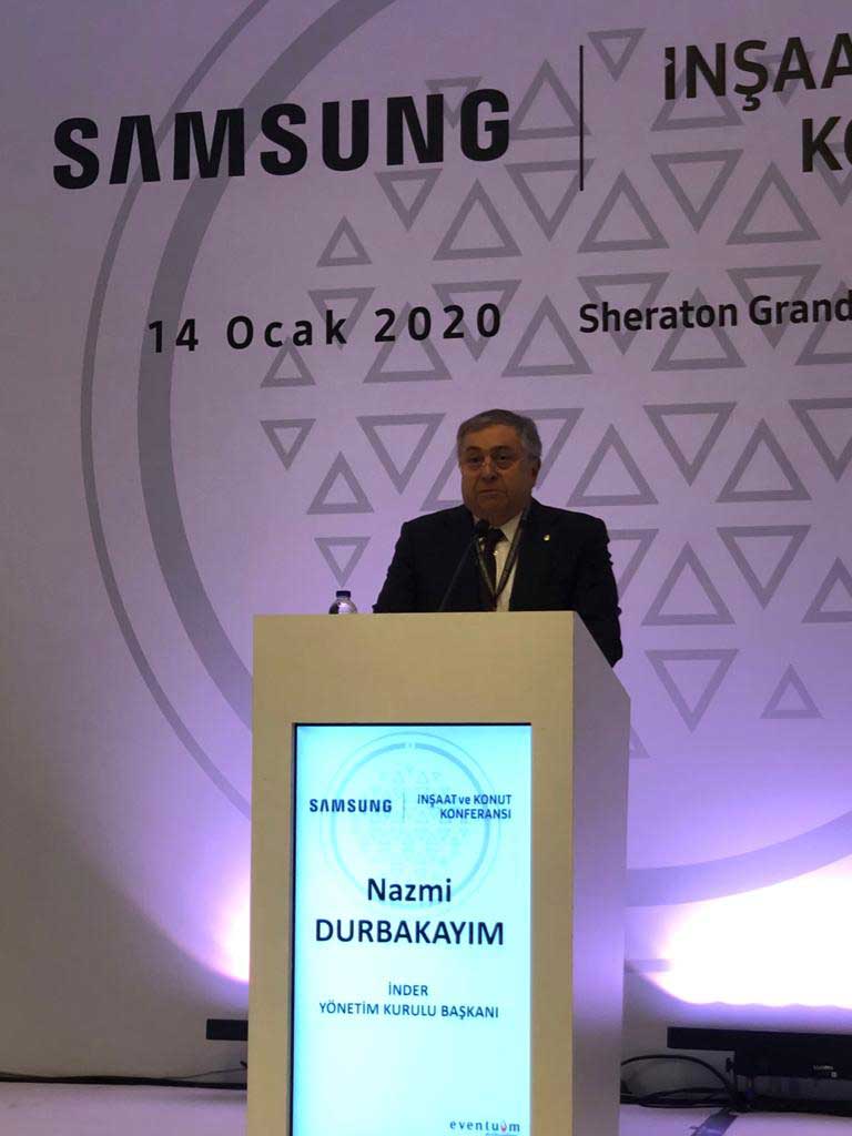 14 ocak 2020 salı günü Ataşehir’deki Sheraton Grand Hotel’de Eventuum tarafından bu yıl 8’incisi düzenlenen Samsung İklimlendirme Çözümleri İnşaat ve Konut Konferansı açılış konuşmasını İstanbul İnşaatçılar Derneği (İNDER) ve Teknik Yapı Yönetim Kurulu Başkanı Nazmi Durbakayım yaptı.