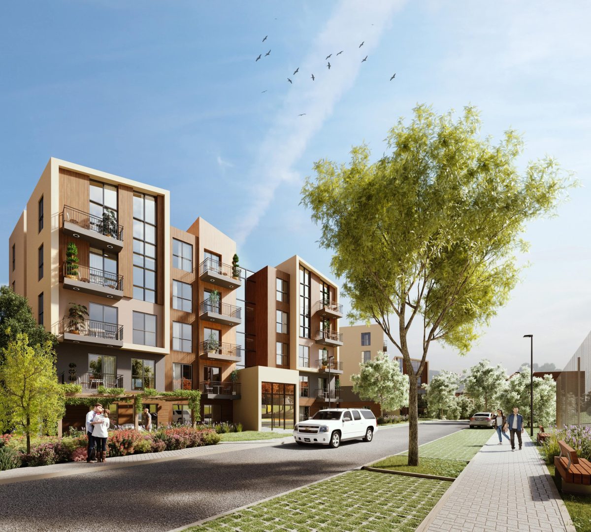 Nef Koruköy düşük yoğunluklu alçak katlı binaları ve doğa dostu mimari tasarımı ile şehirden kopmadan doğa ile iç içe yaşamak isteyen aileler için tasarlandı.