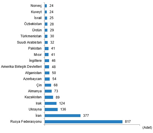 Nisan ayında Rusya Federasyonu vatandaşları Türkiye’den 817 konut satın aldı. Rusya Federasyonu vatandaşlarını sırasıyla 377 konut ile İran, 136 konut ile Ukrayna ve 124 konut ile Irak vatandaşları izledi.