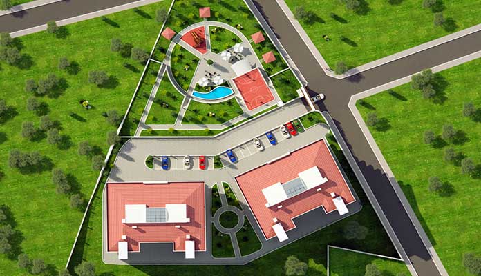 - Peyzajlı ortak yeşil alanlar, kamelyalar, süs havuzu