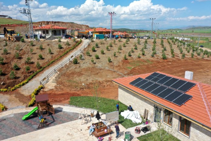 Köy tipi kalıcı afet konutları, TOKİ standartlarında zemin etütleri yapılarak kaya zemin üzerine, radye temel, betonarme olarak rekor bir sürede 44 günde tamamlandı.