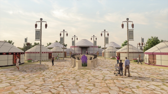 Yaklaşık dört yüz çadırı simgeleyen kırk adet kıl çadır konaklama alanında, gelen ziyaretçilere, o tarihi dokunun yeniden yaşatılması hedefleniyor.