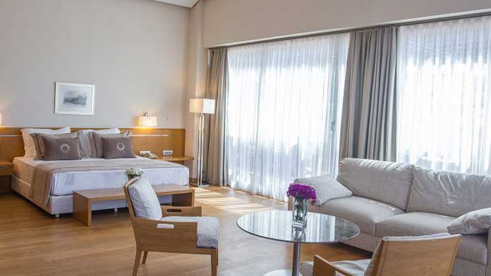 Sade, zarif ve modern odaları; geniş suitleri, Deluxe, Junior Suite, Exclusive Suite ve Presidential Suite olarak kategorilendirilmiş, toplamda 73 odanın hepsi deniz, havuz ve bahçe manzarası ile mavi ve yeşilin tüm tonlarına ev sahipliği yapmaktadır.
