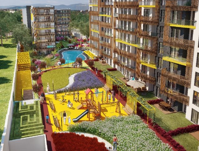 - Yüzde 75’i peyzajlı yeşil alan, renkli bahçe, minderli bahçe, serin bahçe, hareketli bahçe, labirent bahçe, barbekü alanı, yapay şelale