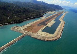 Karadeniz’de kamu yatırımı için arsa sıkıntısı yaşandığını da belirten Vali Balkanlıoğlu, "Havalimanı denizin doldurulmasıyla yapılmasının bir diğer hikmeti de Karadeniz’de arsa sıkıntısı var. Bir tarafı deniz, bir tarafı dağ, tamamen yamaç. Az düzlükte de vatandaş konutlarını yapıyor, tarımla uğraşanların da kısıtlı arazisi var. Bizim işin dezavantajlı yanı kamu yatırımları için hazineye ait arsa yok Karadeniz’de. Çok kısıtlı az var. Bu nedenle kamulaştırma yapmak gerekiyor. Bir havaalanı takdir edersiniz ki çok büyük alanlara kuruluyor. Buraya yakın dağlardan milyonlarca metreküp taş taşındı. Havaalanının 2 kilometre yakınında malzemenin olması malzemenin de son derece kaliteli ve taşınmaya, yıpranmaya, taşların tuzlu suya dayanıklı olması bizim için büyük bir avantajdı. Tabi bir dağı yok ettik ama sonuçta da çok güzel bir havaalanına kavuştuk" diye konuştu.