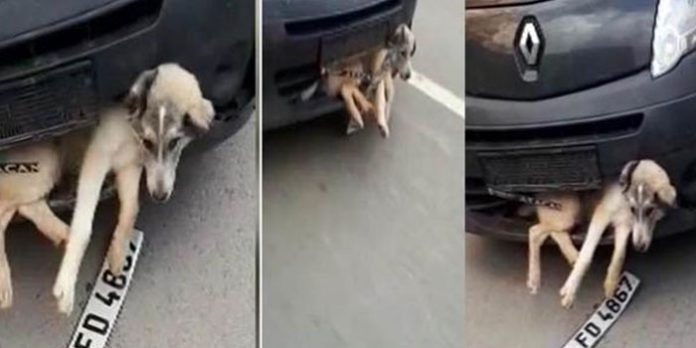 Çarptığı köpeğin tampona sıkıştığını farkedemeyen sürücü dakikalarca yaralı hayvanla yoluna devam etti!