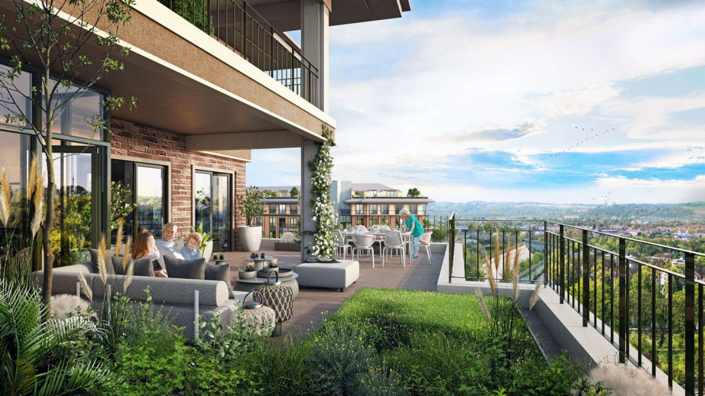 Projede çevreyi de içine alan, doğa ile bütünleşen, doğayı adeta evlerin için taşıyan “Prairie Mimari Ekolü”nden esinlendiklerini söyleyen Özak Göktürk Mimari ve Tasarımdan Sorumlu Genel Müdür Yardımcısı Tuba Bayraktar, “Bahçe, geniş balkon ve geniş teraslarda oluşturduğumuz doğal peyzaj alanları ile evlerin kendilerine ait yeşil alanları olmasını sağladık. Bu alanlar her katta adeta bahçe katı hissi yaratırken aynı zamanda kişilerin bahçe yaşamı veya organik ürün yetiştirme gibi hobilerini gerçekleştirmesine de olanak verdi” dedi. Projedeki dairelerin tamamının çatı terası, podyum terası ya da büyük balkonlara, zemin kattaki dairelerin de bahçe alanına sahip olduğunu söyleyen Tuba Bayraktar, yeşil alana açılan odaların bir çok projede olduğu gibi ölü alan niteliğindeki yatak odalarının değil, ortak yaşam alanlarının olduğunun altını çizdi.