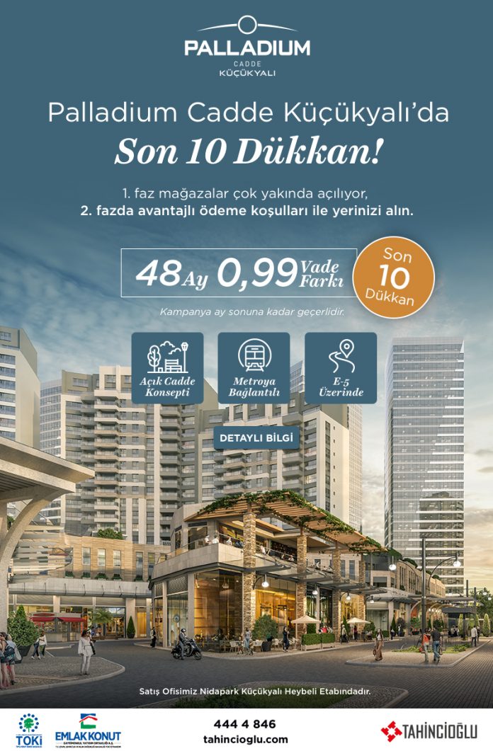 Tahincioğlu Gayrimenkul’ün Küçükyalı’da geliştirdiği Nidapark Küçükyalı projesi içinde yer alan ve açık hava konseptinde tasarlanan Palladium Cadde’deki son 10 dükkan avantajlı ödeme koşullarıyla yatırımcılarını bekliyor.