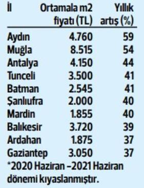Listede en çok artışların yaşandığı iller arasında yazlık ilçelerin çok olduğu Aydın, Muğla, Antalya ve Balıkesir yer alıyor.