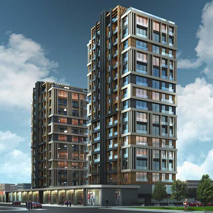 Projede tamamı brüt 208 metrekare büyüklüğünde ve 5+1 kat planında 50 daire ile 21 ticari alan bulunuyor.