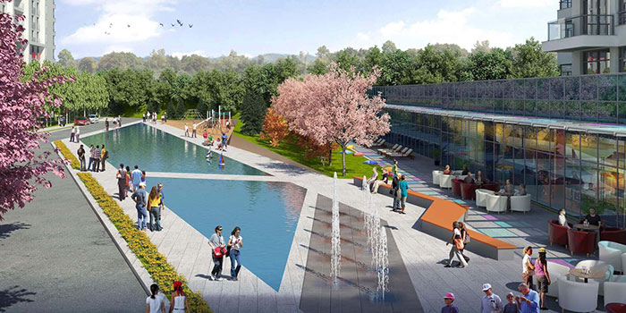 Toplamda 50 bin metrekarelik bir büyüklükte 9 tematik alanın bulunduğu projenin normal sosyal donatı alanlarının haricinde çok büyük bir süs havuzu, bu havuzun içinde çocuklara özel olarak tasarlanan Macera Adası, amfi tiyatro olarak ta kullanıma olanak veren sanat merdivenleri, şenlik meydanı, yaz aylarında açık hava sineması olarak ta kullanıma müsait yeşil alan bulunuyor.