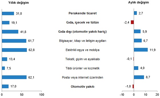 Perakende satış hacmi yıllık yüzde 31 arttı..