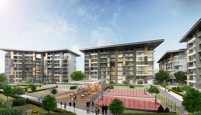 - Peyzajlı yeşil alanlar, yürüyüş yolları, süs havuzları, oturma alanları