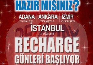 Birbirinden şaşırtıcı sürprizlerin de yer alacağı Recharge toplantıları 21 Ocak’ta Adana’da, 23 Ocak’ta Ankara’da, 25 Ocak’ta İzmir’de ve 31 Ocak’ta İstanbul’da gerçekleştirilecek.