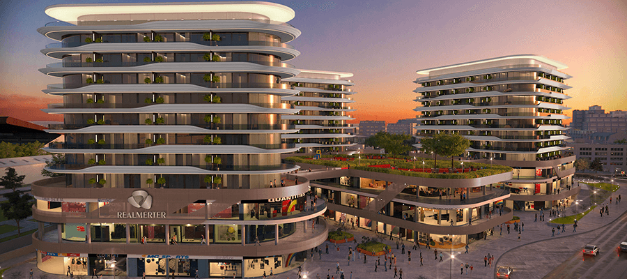 15 bin metrekare arsa alanı üzerine yayılan Real Merter projesi 3 katlı yatay bir baza üzerinde 10 katlı 3 blok halinde hayata geçiriliyor. Real Merter projesi toplam 248 adet konut ve 155 adet ticari birimden meydana geliyor.