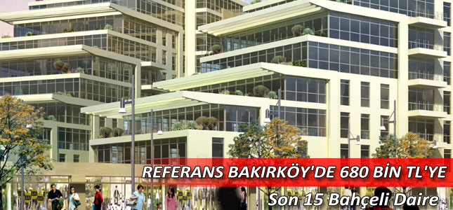 Biskon Yapı ve Kiler Holding tarafından Bakırköy'de hayata geçirilen Referans Bakırköy projesinde 680 bin TL'ye 2+1 son bahçeli daireler satışta.255 konut ve home office ile Bakırköy'ün butik projesi Referans Bakırköy'de teslimler 11 ay sonra başlayacak.