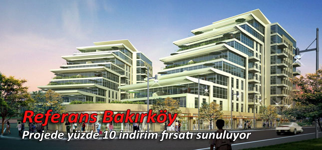 Referans Bakırköy Konutları’nda yüzde 10 indirim fırsatı sunuluyor. Merkezi konumuyla dikkat çeken projede yüzde 25 peşinat verip kalan bölüm konut kredisiyle kapatılabiliyor. 13 bin metrekare arsa üzerinde inşa edilen Referans Bakırköy içerisinde sunulan sosyal olanaklar, yüzme havuzu, fitness center, sauna, Türk hamamı, kafe, restoran, kreş, kuaför, güneşlenme terası şeklinde sıralanıyor.