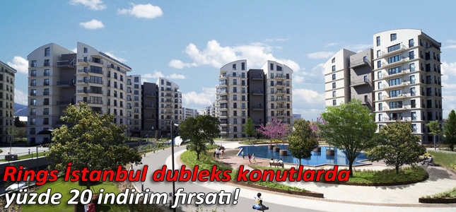 Rings İstanbul, villa konforu ararken site hayatının canlılığını kaçırmak istemeyenlere ‘Alt katı sizden, üst katı bizden’ sloganıyla muhteşem bir fırsat sunuyor. Rings İstanbul’da yeni satışa açılan sınırlı sayıdaki geniş bahçeli veya orman manzaralı teraslı dubleks evlerden birine 30 Haziran tarihine kadar yüzde 20 indirim fırsatıyla sahip olmak mümkün.