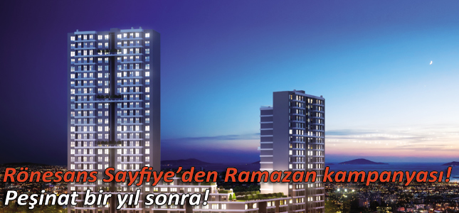 Ramazan ayının gelmesiyle konut firmaları da Ramazan kampanyalarını aşıklamaya başladı. Bunlardan biri de Rönesans Konut oldu. Firmanın Kartal Yakacık’taki Rönesans Sayfiye projesinde Ramazan ayına özel başlatılan kampanyada peşinat bir yıl öteleniyor.