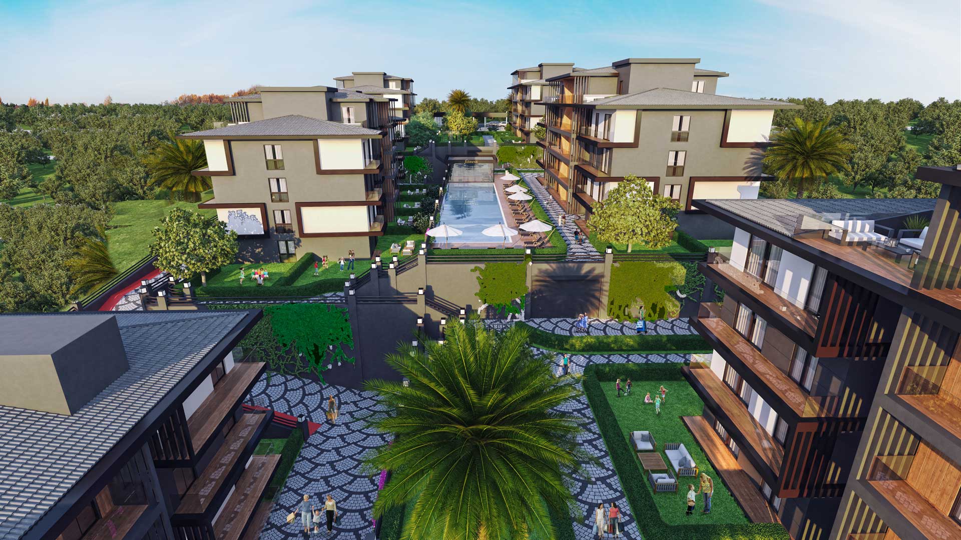 - Çocuklar için oyun alanları, yürüyüş yolu
