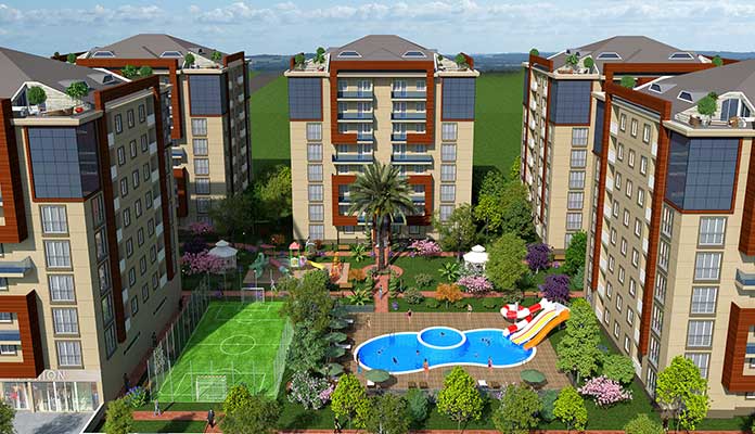 Projede; 3+1, 4+1 ve suit kat planlarında 156 daire ile 3 dükkan bulunuyor.