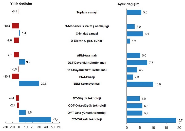 Sanayi üretimi aylık %5,5 arttı